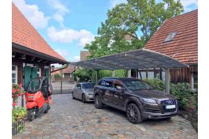 Starten Sie einen Rundgang unter dem Nagoya Single. Wenn Sie auf das Bild klicken, öffnet sich ein Foto, welches Sie in verschiedene Richtungen drehen können. Schauen Sie sich das Nagoya genau an, zoomen Sie an die Stellen, die für Sie interessant sind. Gucken Sie durch das Dach oder klicken Sie auf die kleinen Symbole, um sich das Nagoya von allen Seiten anzuschauen.Das abgebildete Nagoya ist von einem Kunden der Deutschen Carportfabrik. Der Carport wurde von uns geliefert und aufgebaut.