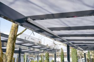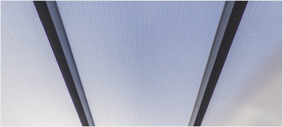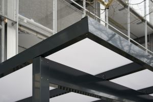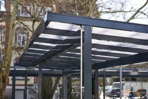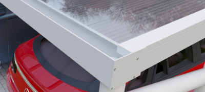 Das C-Blendprofil schliesst das Carport an der Front so ab, dass ein klarer kubischer Look entsteht.